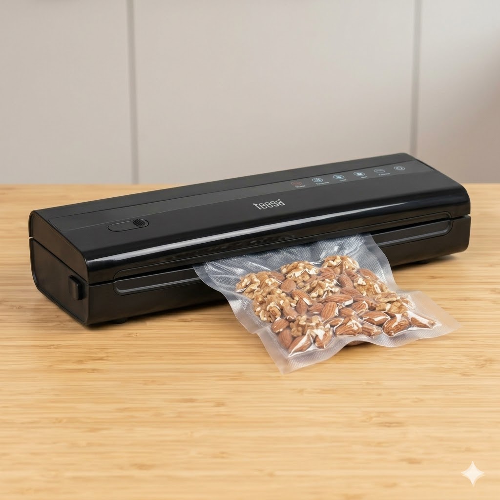 Aparatul de vidat Teesa V200 este soluția ideală pentru orice bucătărie modernă, ajutându-te să reduci risipa alimentară și să organizezi mai eficient spațiul din frigider. Prin eliminarea aerului, procesul de oxidare este încetinit, astfel încât carnea, legumele, fructele sau brânzeturile își păstrează aroma, textura și proprietățile nutritive pentru o perioadă mult mai lungă.