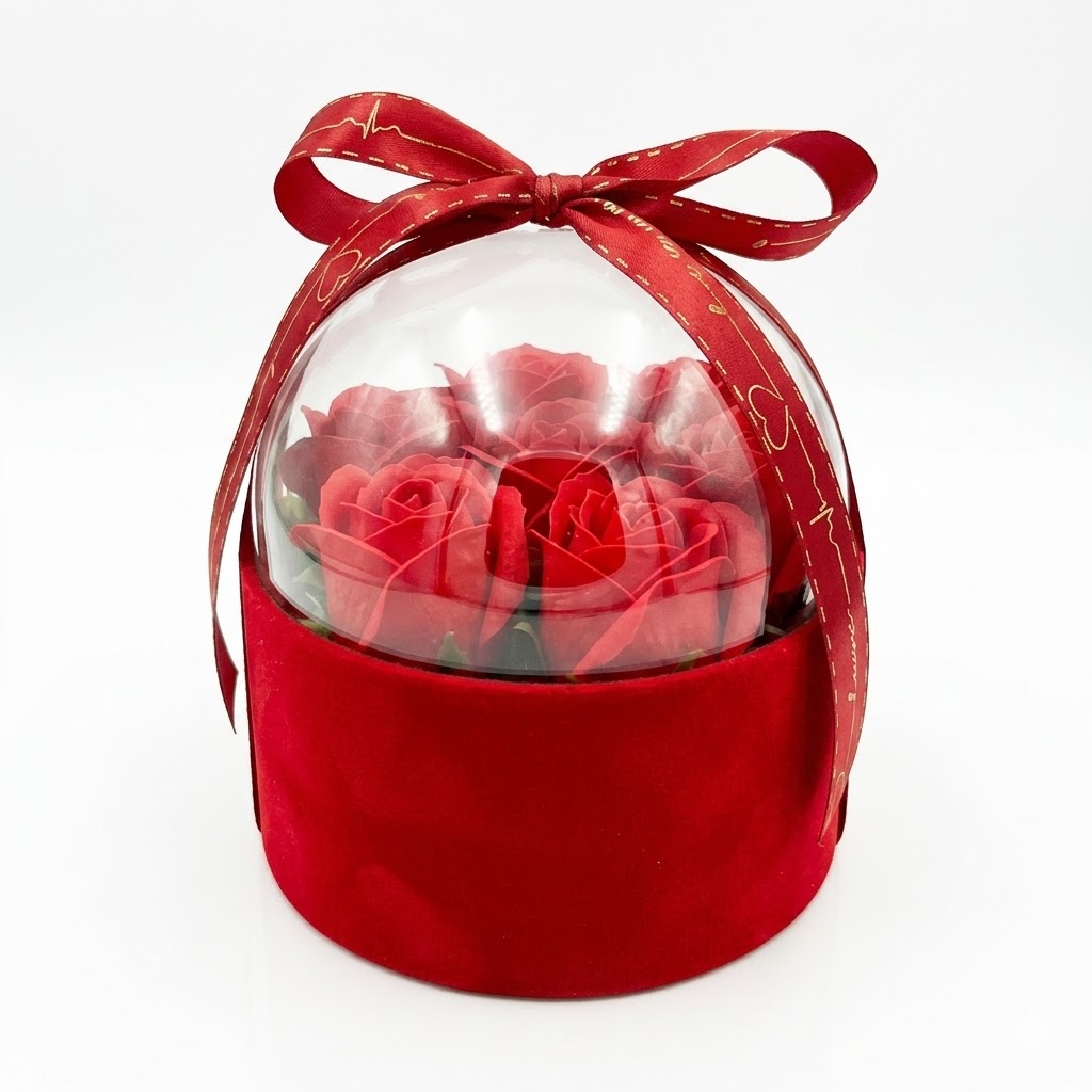 Aranjament Floral cu Trandafiri Artificiali Roșii în Cupolă și Cutie de Catifea Premium