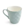 Cana Mint Elegance nu este doar un simplu recipient pentru băuturi, ci un accesoriu de design care aduce un suflu nou în bucătăria ta. Nuanța delicată de verde mentă evocă prospețime și liniște, fiind fundalul perfect pentru modelul geometric reliefat care îmbracă întreaga suprafață a cănii.