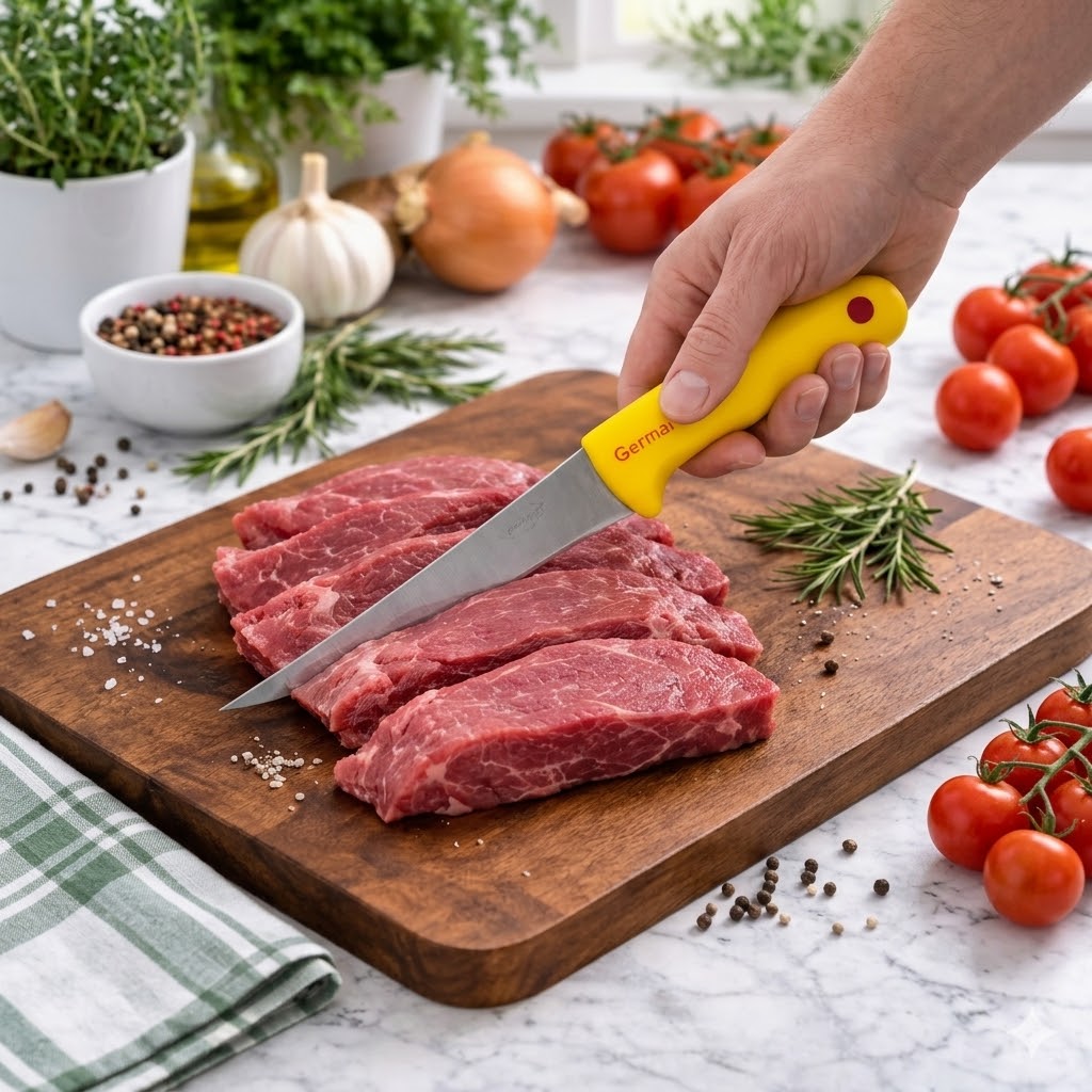 Cuțit bucătărie profesional cu mâner ergonomic galben – model German