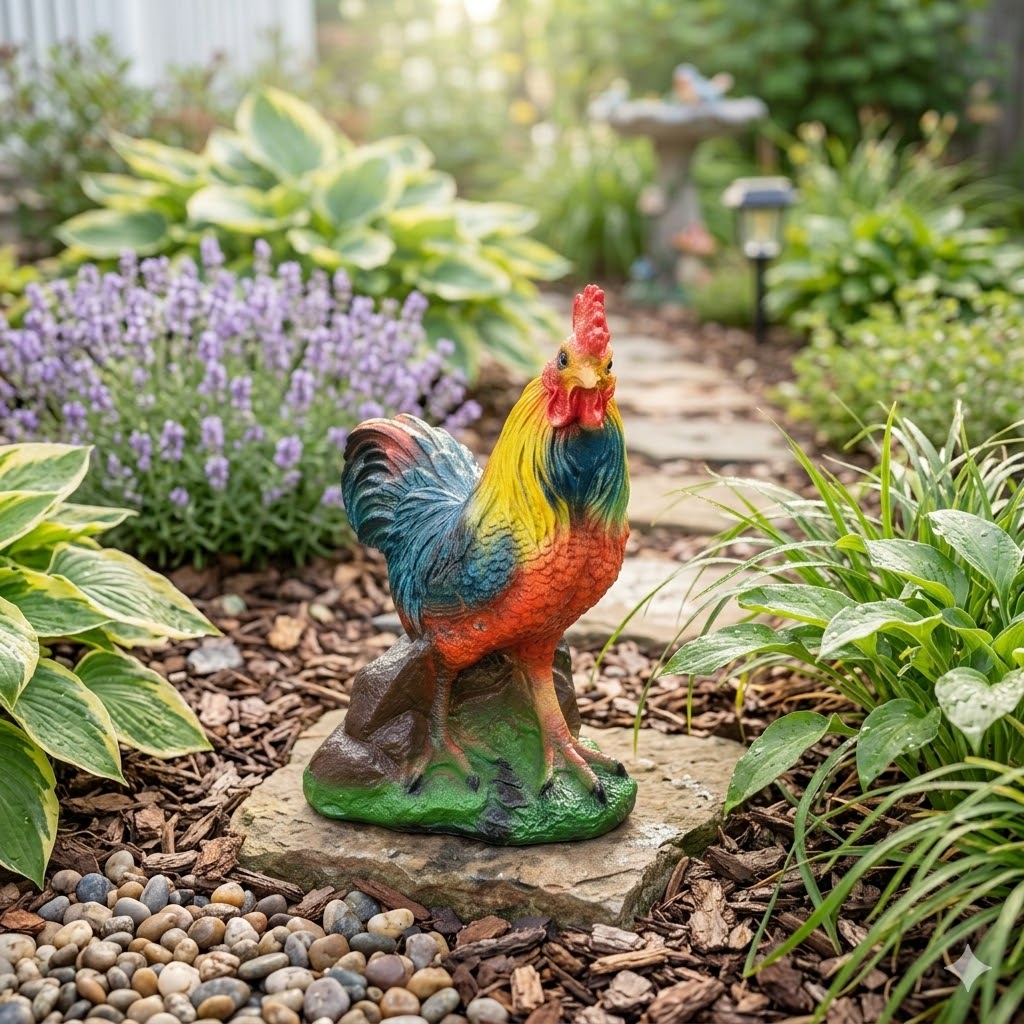 Transformă-ți spațiul exterior cu această figurină decorativă impresionantă. Cu un penaj pictat manual în nuanțe vibrante de roșu, galben și albastru, această statuetă este detaliul perfect pentru a aduce la viață orice colț de natură. Se integrează minunat fie că o așezi printre florile din grădină, pe o terasă, direct pe gazon sau lângă un iaz artificial.