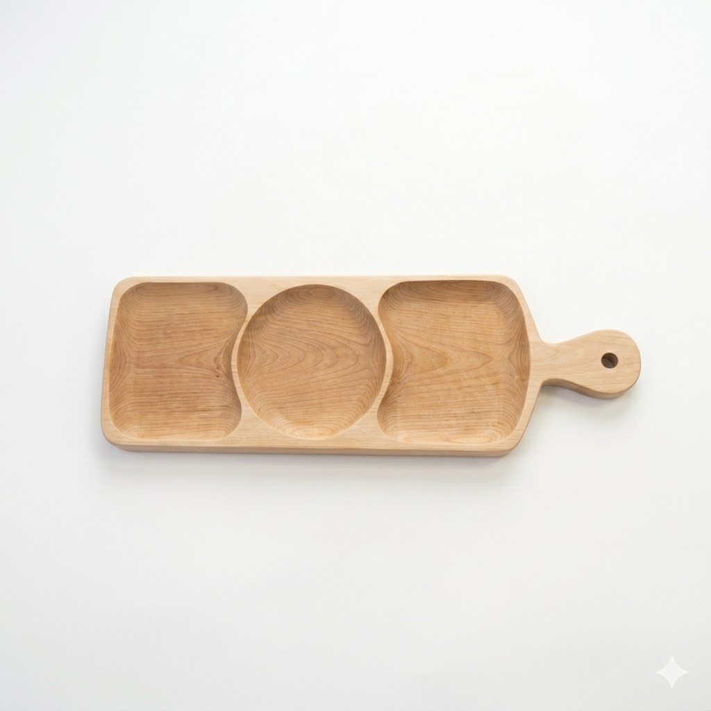 Platou Dreptunghiular din Lemn Masiv, cu 3 Compartimente pentru Servire