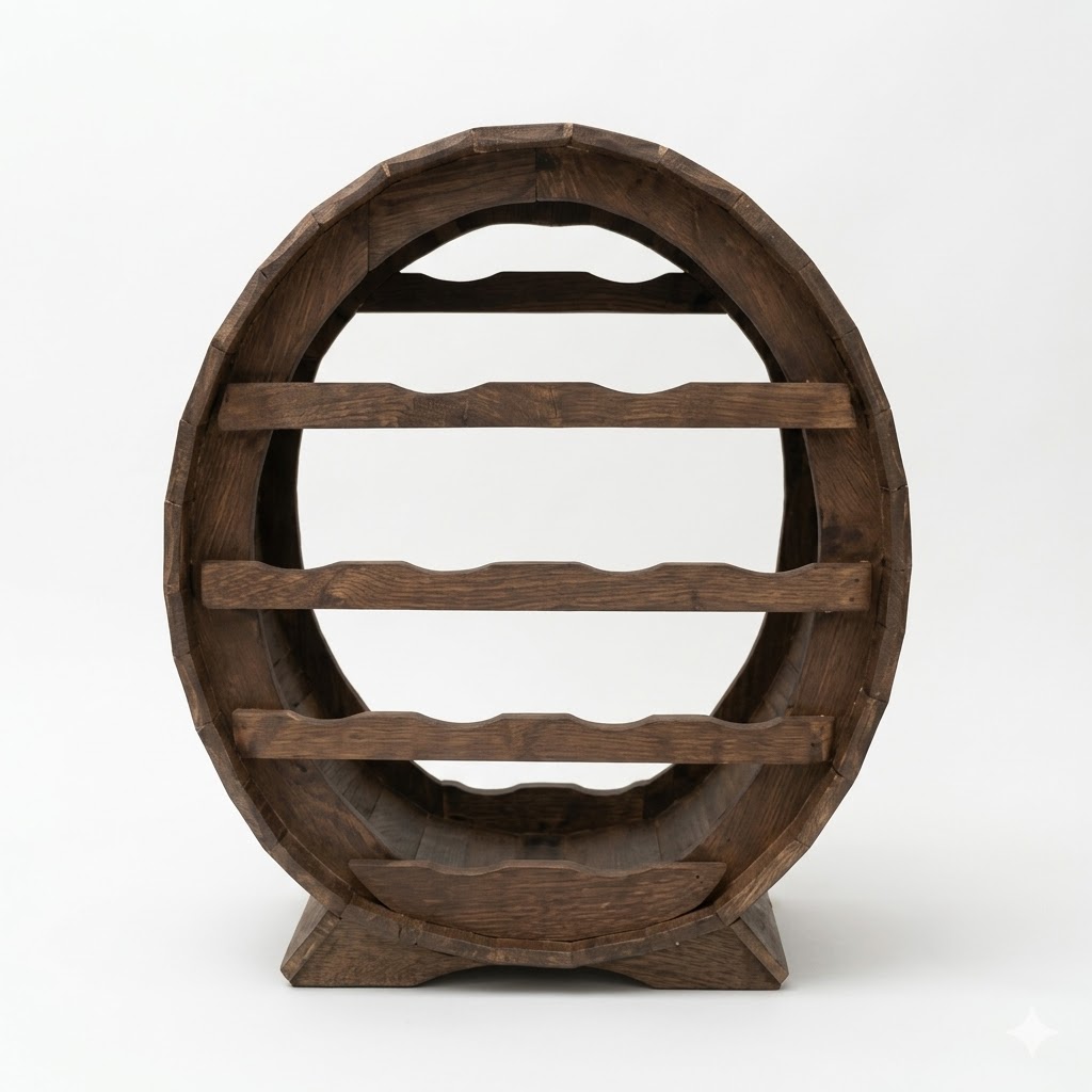 Design Autentic: Forma circulară de butoi oferă un aspect tradițional, ideal pentru crame, restaurante sau livinguri amenajate cu gust.
