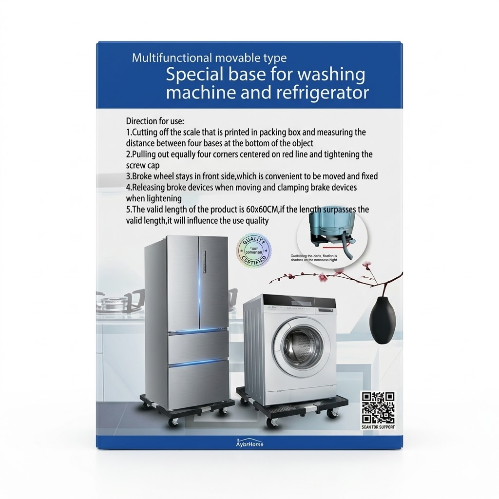 Mutarea mașinii de spălat sau a frigiderului pentru curățenie nu mai trebuie să fie o provocare. Acest suport universal este soluția ideală pentru a proteja pardoseala și a oferi stabilitate maximă electrocasnicelor tale.