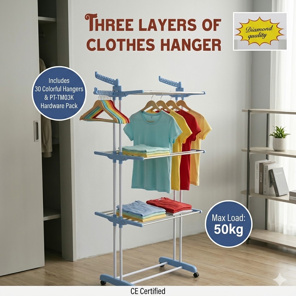 Uscător Rufe Vertical pe 3 Niveluri: Soluția Supremă pentru Economisirea Spațiului (Max. 50 kg)